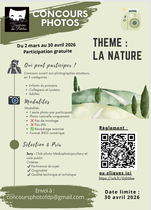 L’association culturelle Les Fourberies des Patelins vous propose de participer à un concours photo sur le thème de la Nature. avec pour jury, les membres de Média Photo Jonchery.