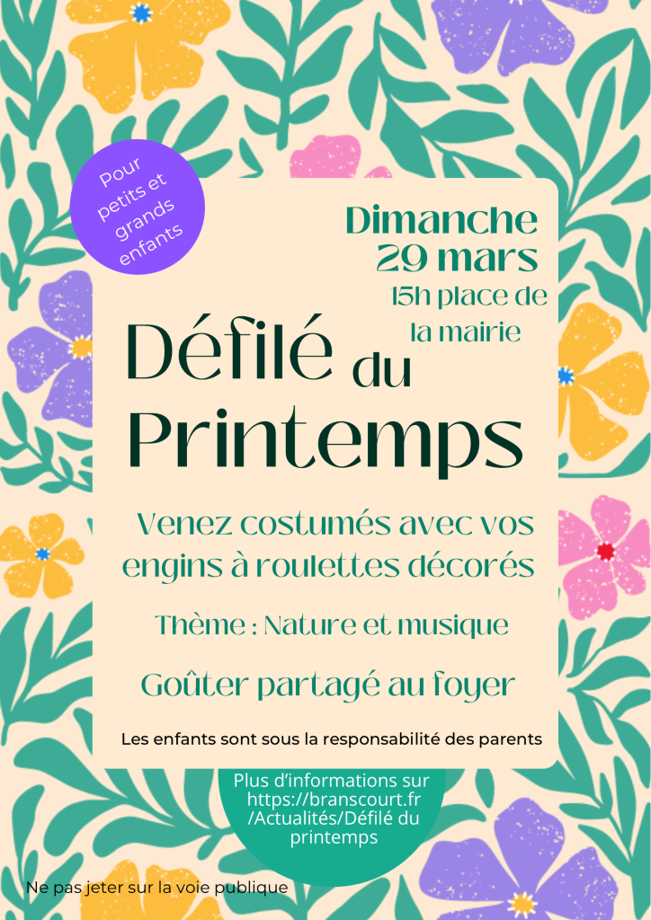 Le Comité des Fêtes de Branscourt propose aux enfants (et plus grands) de fêter le Printemps le dimanche 29 mars à 15h00.