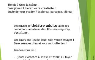 Atelier Théatre pour adultes Comité des Fêtes2025-09-27T13:50:40+01:0027 septembre 2025|Les Fourberies des Patelins|